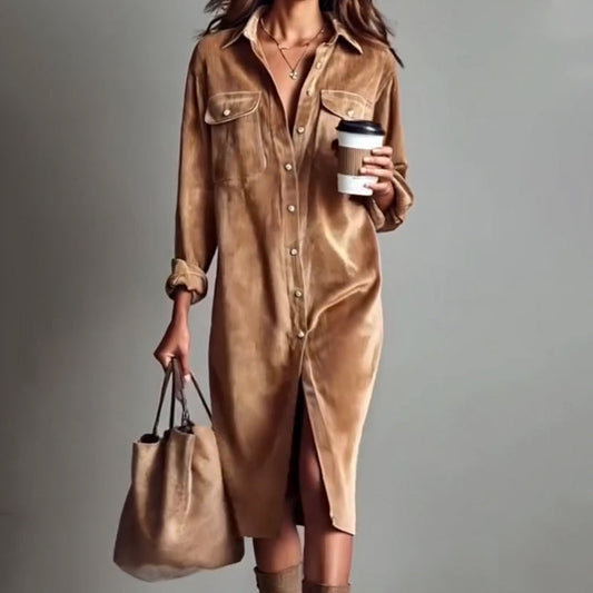 🔥 55% OFF! Effortless Chic Corduroy Shirt Dress – Soft, Cozy & Versatile for All Seasons 🍂