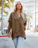 Get ready to be super cozy! This oversized pullover has ahold and snap buttons on the front. The contrast ribbed bottom and sleeve make for the perfect look!