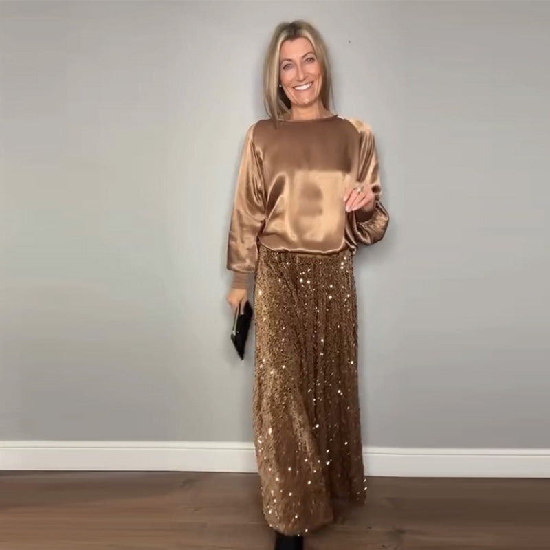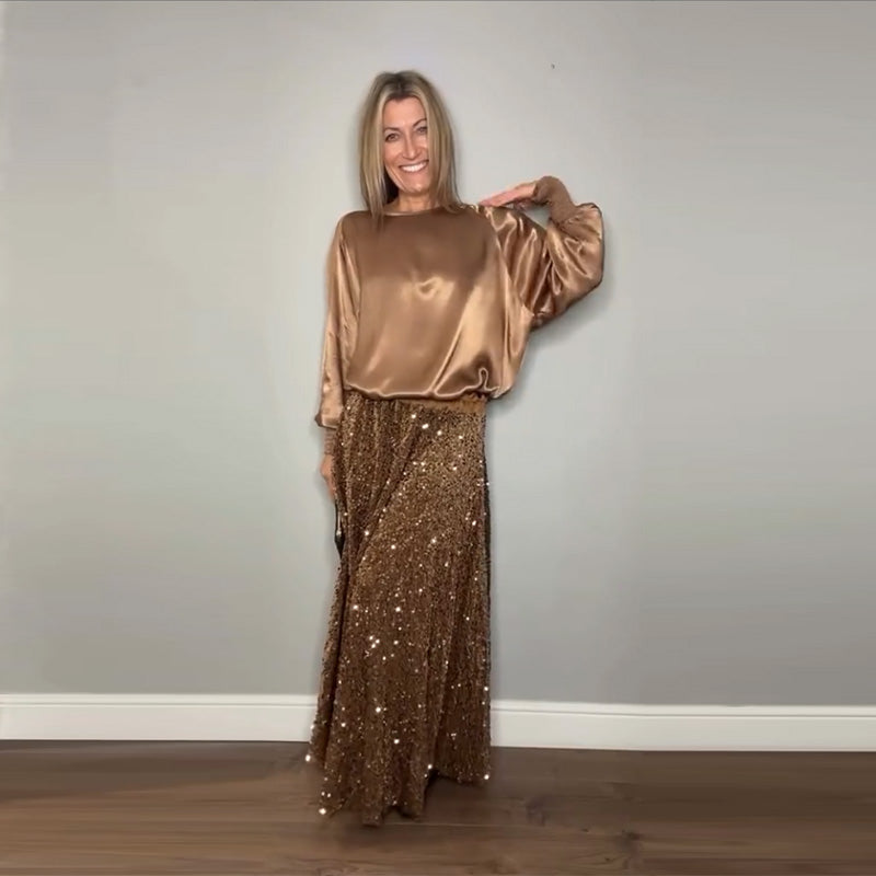 EASY TO CARE FOR - Both the crew neck top and sequin maxi skirt are designed for low-maintenance care. Machine washable on a gentle cycle and requiring minimal ironing, these pieces save you time and effort while keeping their look fresh and stunning.