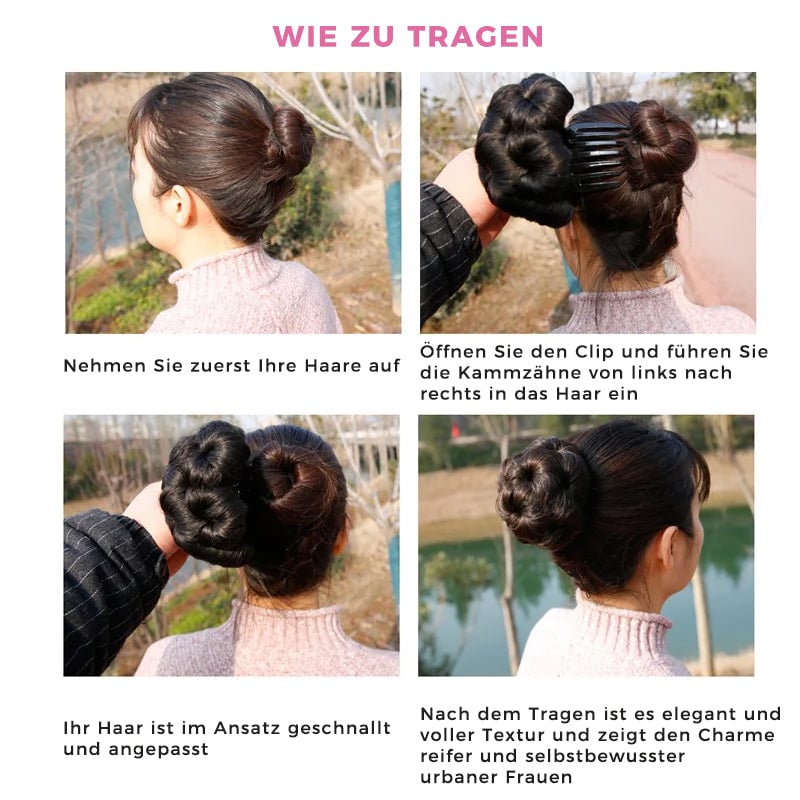 - 🌸 Material: Made of high-quality high-temperature silk with a matte finish like real hair. Composed of several flower-shaped buns, it is very original and chic and immediately makes you feel like a princess, more beautiful and more elegant.