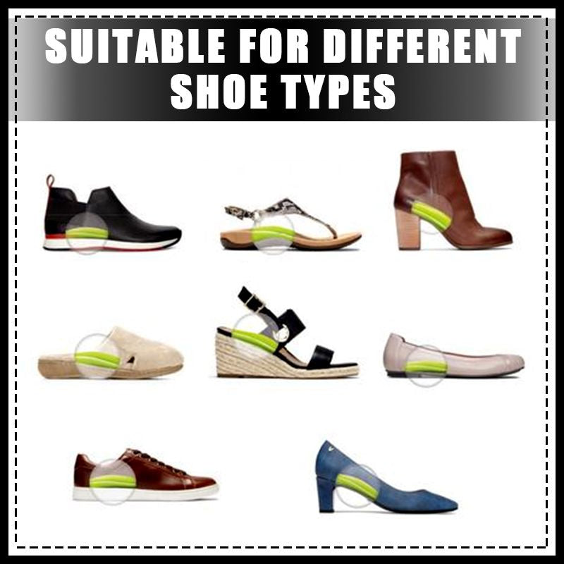 These arch support shoe pads are easy to install in all different types of shoes, such as sneakers, boots, casual shoes, high heels, flat shoes, etc. The insoles can be cut to fit your shoe size.