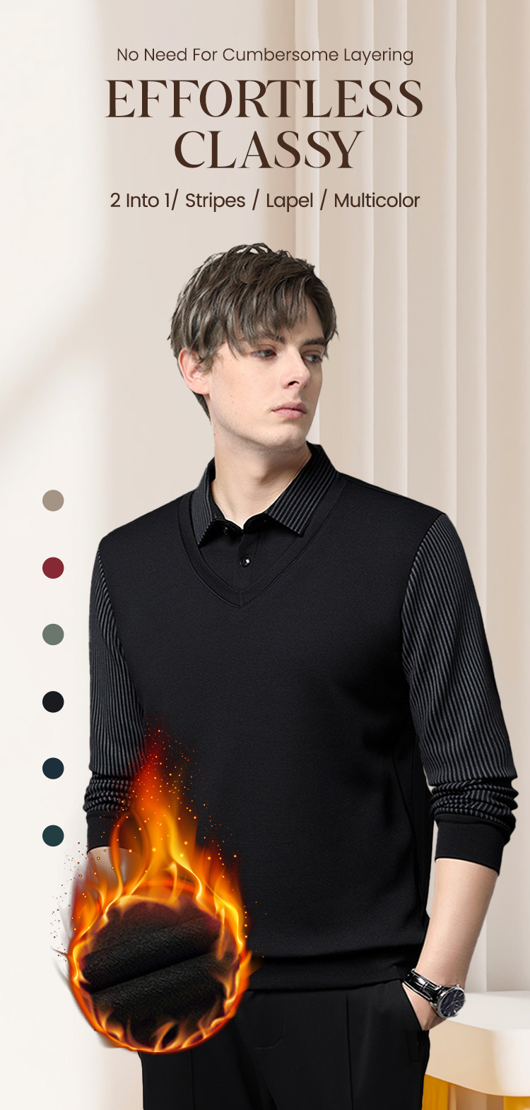 🎁 Hot Sale 49% OFF 🔥Striped Lapel Fake Two-Piece Shirt