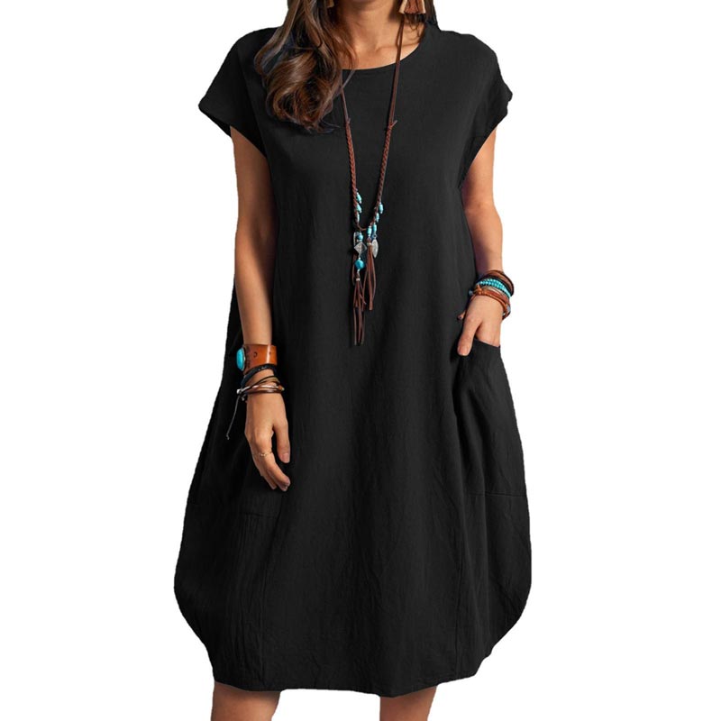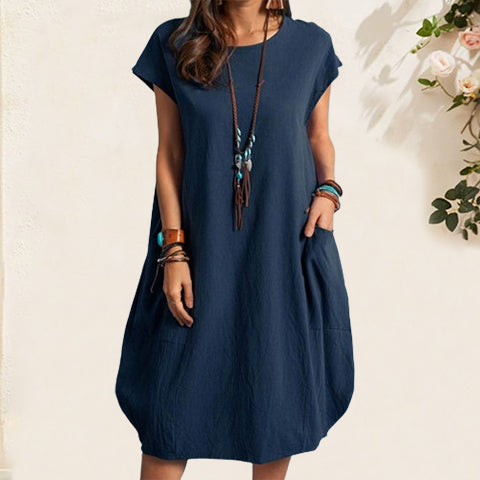 Women's Cotton Linen Loose Casual Pocket Dress