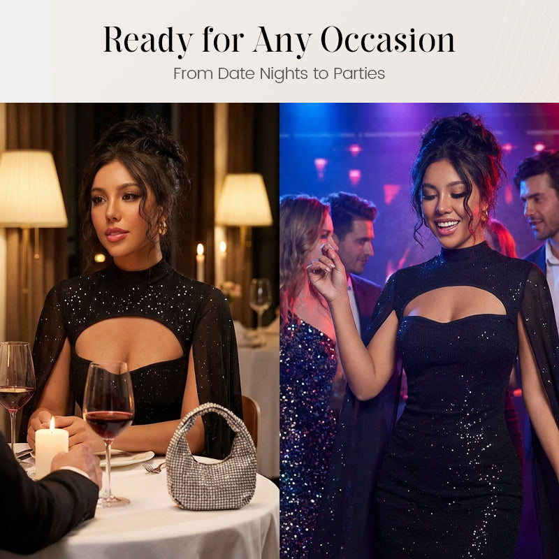 SPARKLING FABRIC DETAIL: Adorned with shimmering accents that catch the light, making it the perfect choice for evening parties, cocktails, or special events.