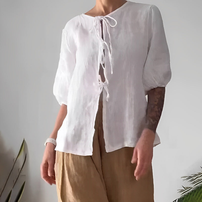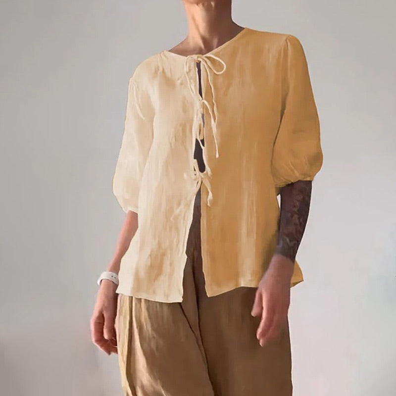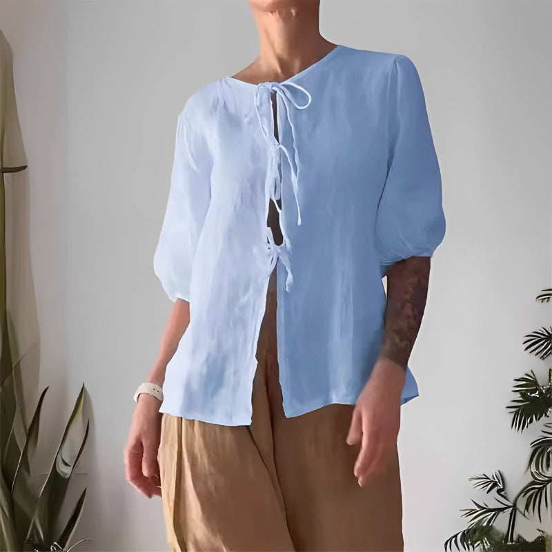 STYLISH DESIGN - The top features a charming tie-front design, adding a sense of style to your overall look. The flowy wide-leg pants provide a relaxed fit, flattering any body type while ensuring comfort without sacrificing style.