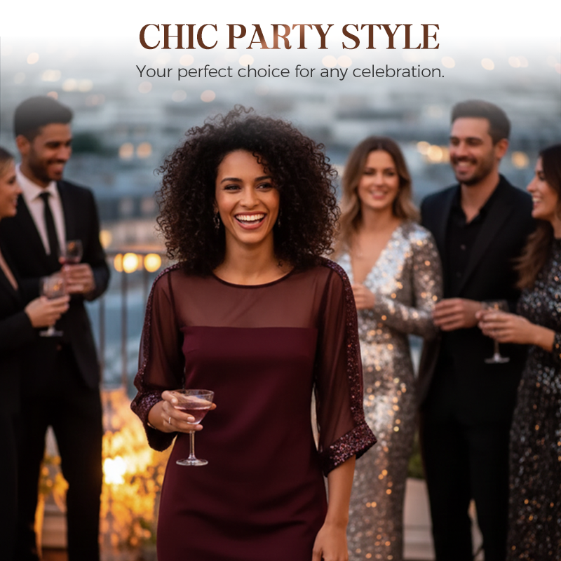 Package Includes: 1* Women's Sequin Trim Sheer Sleeve Party Dress